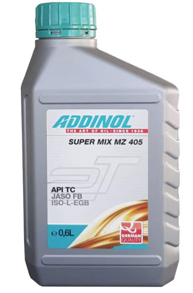 ADDINOL Super Mix MZ 405 — это высокоэффективное самосмешивающееся моторное масло для двухтактных двигателей, изготовленное на основе высококачественных рафинатных минеральных масел и легированное комплексом высокоэффективных присадок. Применяется в термически высоконагруженных двухтактных двигателях с воздушным и водяным охлаждением, оснащённых смешанной или раздельной системой смазки (система автоматической подачи масла в топливо), например, в мотороллерах, мопедах, легковых автомобилях и мотоциклах.