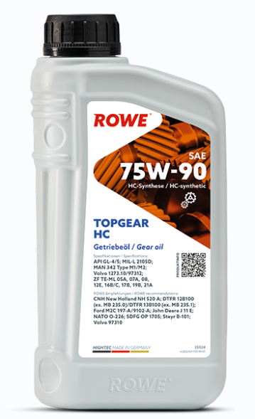 Rowe Topgear 75W-90 HC — высокопроизводительное всесезонное трансмиссионное масло на основе HC-Synthese. Предназначено для механических коробок передач и главных передач.