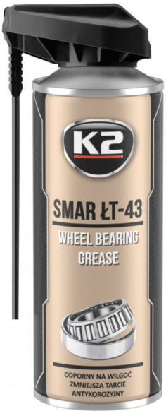 Смазка-спрей K2 ŁT-43 на основе лития предназначена для смазки подшипников и узлов промышленной и сельскохозяйственной техники. Обладает устойчивостью к влаге, окислению и нагрузкам, не стекает с вертикальных поверхностей и обеспечивает надежную защиту от износа.