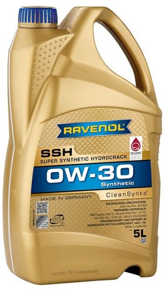 RAVENOL SSH 0W-30 – полностью синтетическое моторное масло на основе полиальфаолефинов (ПАО), изготовленное с применением технологий USVO® и CleanSynto® для легковых бензиновых и дизельных моторов с и без турбонаддува и прямым впрыском топлива.