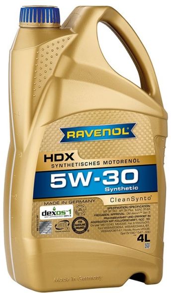RAVENOL HDX SAE 5W-30 — синтетическое моторное масло с низким коэффициентом трения, изготовленное с применением технологии CleanSynto для бензиновых двигателей легковых автомобилей с турбонаддувом и без него, а также с непосредственным впрыском. RAVENOL HDX SAE 5W-30 сводит к минимуму трение, износ и расход топлива, обладая превосходными характеристиками холодного пуска.