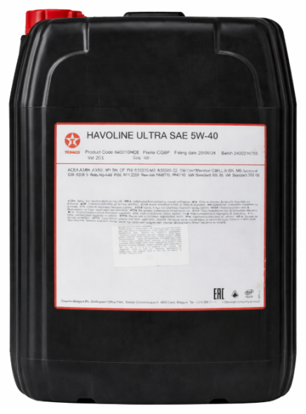 Texaco Havoline Ultra 5W-40 — синтетическое всесезонное моторное масло для бензиновых и дизельных двигателей. Обеспечивает стабильность вязкости, надежную защиту от износа и легкий запуск при низких температурах. Произведено на базовых маслах Группы III.