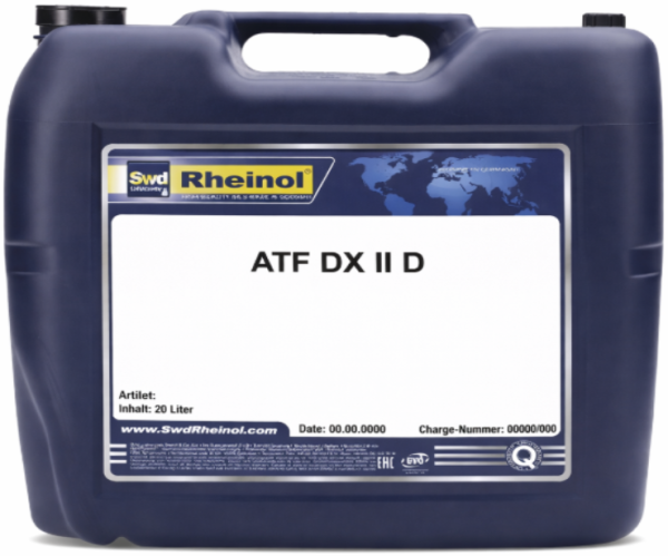 Rheinol ATF DX II D — трансмиссионная жидкость универсального применения для автоматических коробок передач, гидроусилителей руля и гидравлических систем, где предусмотрено использование жидкостей по спецификации GM DEXRON II. Обеспечивает надежную работу современных автоматических трансмиссий легковых и грузовых автомобилей, а также тяжелой техники и других агрегатов.
