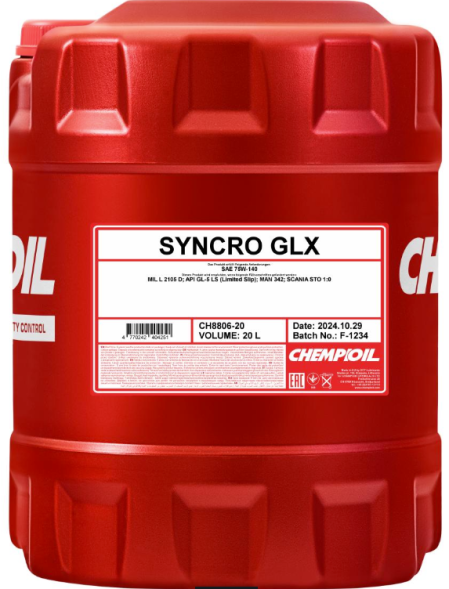 Chempioil Syncro GLX 75W-140 — полностью синтетическое трансмиссионное масло на основе PAO для дифференциалов и главных передач. Подходит для дифференциалов повышенного трения (Limited Slip), а также гипоидных, конических и спиральных передач. Обеспечивает надежную защиту от износа, стабильную работу при высоких нагрузках и увеличивает ресурс трансмиссии.