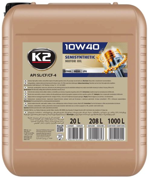 K2 Texar 10W-40 XL — полусинтетическое моторное масло, разработанное по современной технологии для надежной защиты двигателя. Обеспечивает стабильную работу при различных нагрузках и температурах, снижает износ, облегчает запуск двигателя и поддерживает его чистоту. Подходит для бензиновых, дизельных и газовых двигателей легковых автомобилей и микроавтобусов.