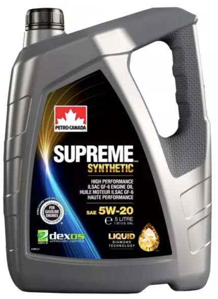 Petro Canada Supreme 5W-20 — полусинтетическое моторное масло (Synthetic Blend), разработанное для современных бензиновых двигателей легковых автомобилей, требующих высокой топливной экономичности и надёжной защиты. Обеспечивает стабильную работу двигателя, снижает износ, способствует поддержанию чистоты деталей и эффективной защите от окисления на протяжении всего интервала замены.