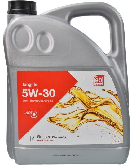 Febi 5W-30 Long life - это ультрасовременное энергосберегающее моторное масло из базовой основы полученной гидрокрекингом, в сочетании с самыми современными пакетами присадок с низким содержанием сажи. Благодаря этому его рекомендовано применять в последних моделях дизельных двигателей с сажевым фильтром (DPF), а также в бензиновых двигателях с высокими требованиями к маслу при предельных нагрузках и увеличенном интервале замены.