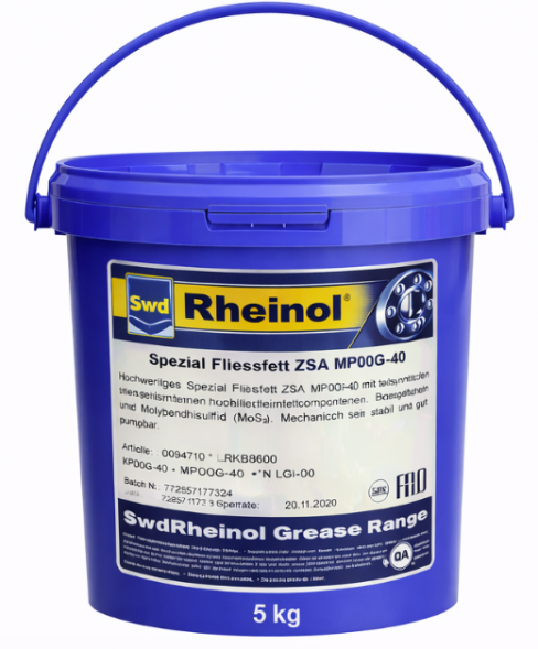 Rheinol Spezial Fliessfett ZSA MP00G40 — полужидкая водостойкая пластичная смазка на основе минерального базового масла с литиевым мылом в качестве загустителя. Содержит противозадирные и противоизносные присадки (EP/AW), обеспечивающие надежную защиту от износа и коррозии, а также стабильную работу узлов даже в тяжелых условиях эксплуатации. Рекомендуется для централизованных систем смазки шасси грузовых автомобилей и для коробок передач с недостаточной герметичностью.