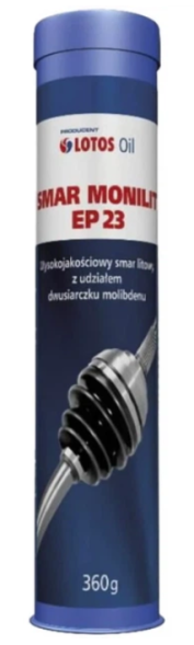 LOTOS GREASE MONILIT EP 23 — универсальная пластичная смазка на минеральной основе с литиевым загустителем, содержащая противозадирные EP-присадки и твёрдый смазочный компонент — дисульфид молибдена (MoS₂). Предназначена для смазывания подшипников скольжения и качения, шарниров, направляющих и других узлов трения, работающих при высоких механических нагрузках, ударных воздействиях и вибрациях. Обладает высокой несущей способностью, хорошей водостойкостью и обеспечивает надёжную защиту от износа и коррозии.