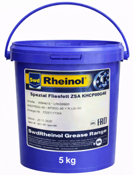 Rheinol Synth. Spezial Fliessfett ZSA KHCP00G40 — полужидкая синтетическая смазка для централизованных систем смазки. Производится на основе синтетического базового масла с литиевым мылом в качестве загустителя. Содержит противозадирные и противоизносные присадки (EP/AW), обеспечивающие надежную защиту от износа, коррозии и стабильную работу узлов даже в тяжелых условиях эксплуатации. Рекомендуется для централизованных систем смазки шасси грузовых автомобилей и коробок передач с недостаточной герметичностью.