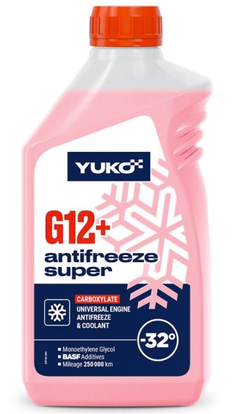 YUKO Antifreeze Super G12+ — готовая к применению высококачественная охлаждающая жидкость красного цвета для современных бензиновых и дизельных двигателей, включая двигатели, изготовленные из лёгких металлов. Обеспечивает надёжную работу системы охлаждения в различных сезонных и климатических условиях.